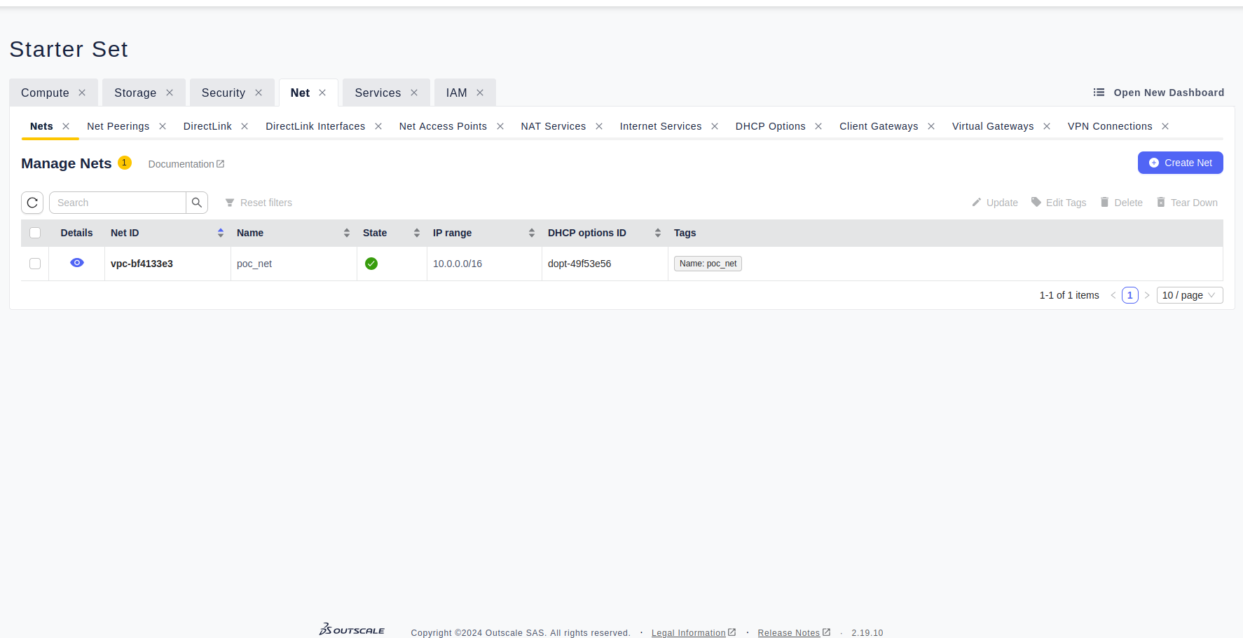 Rendez vous sur l’onglet Net de Cockpit, puis Nets, puis cliquez sur Create Net.