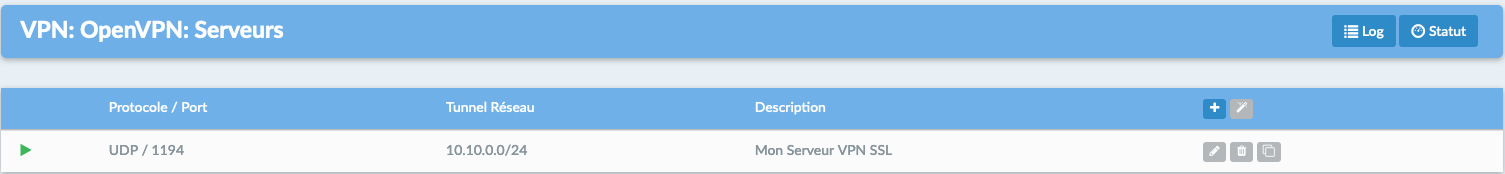 Dans notre configuration, nous n’utilisons qu’un seul serveur, accessible sur le port UDP 1194.