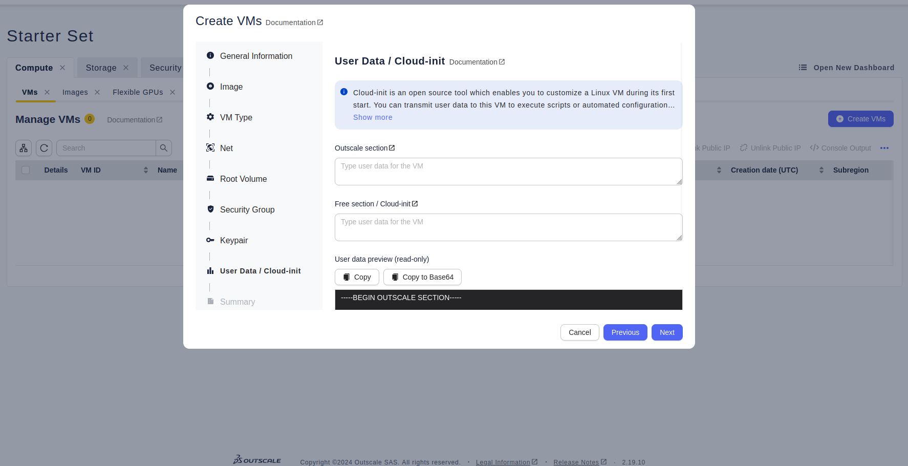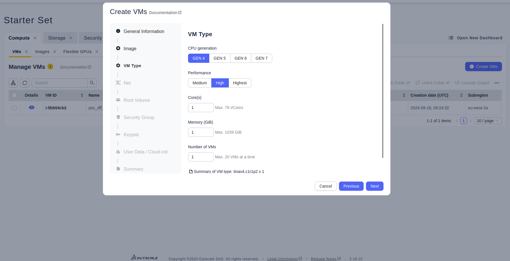 Pour cela, rendez-vous sur l’onglet Compute puis VMs et cliquez sur Create VMs.
