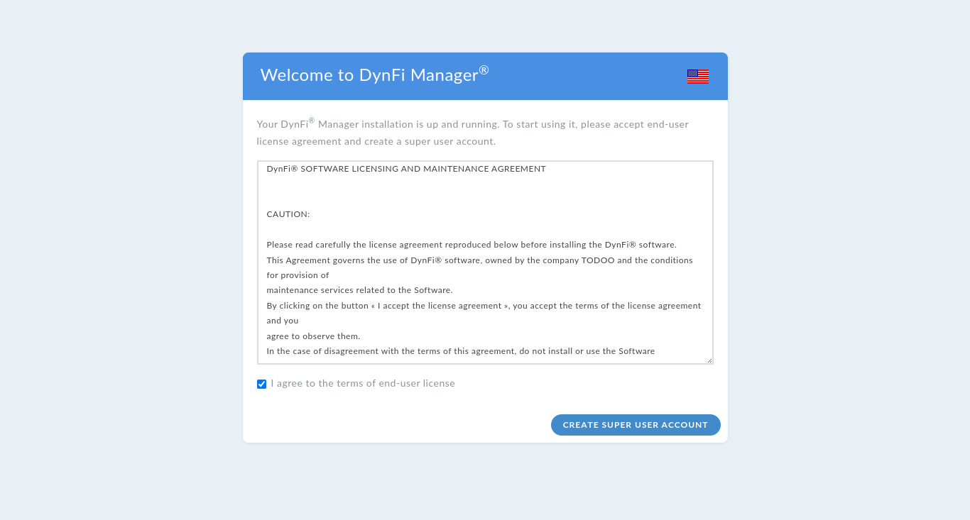 Vous arrivez alors sur le tableau de bord de DynFi Manager.