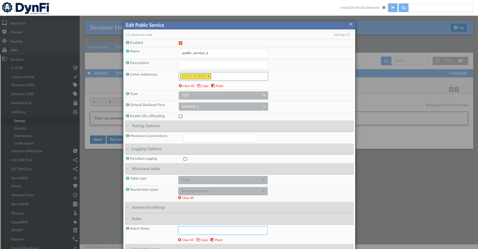Enfin, nous devons ajouter des Public Services, qui auront pour objectif de récolter les requêtes et de les transmettre vers les Backend Pools que nous avons créés.